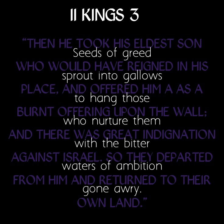 Seeds of greed sprout into gallows to hang those who nurture them with the bitter waters of ambition gone awry.