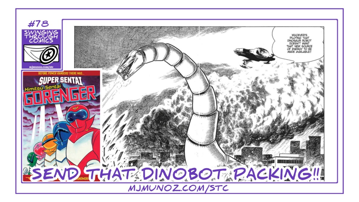 This book has an insufficient chapter breakdown, so I did it on my own. I decided that Chapter 2, which I will dub “Robotosaur Rumble” runs from pages 146-253. Gorenger Chapter 2 opens with a team discussion of the suits appearance and capabilities, then sees the team go up against a dinobot which they alone are unable to destroy.